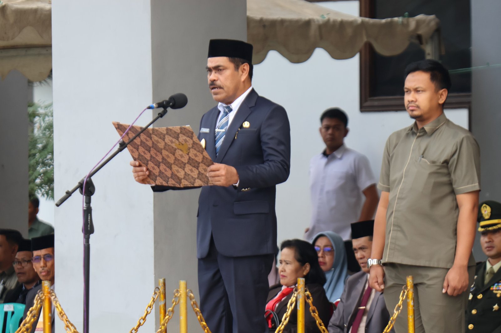 Kegiatan ini, turut dihadiri oleh unsur Forum Komunikasi Pimpinan Daerah (Forkopimda), TNI, Polri, Aparatur Sipil Negara (ASN), siswa-siswi dari seluruh tingkatan sekolah, dan peserta upacara lainnya.
