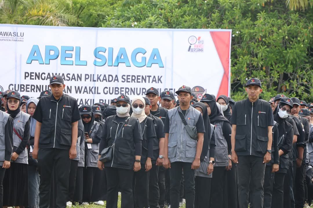 “Apel ini kita selenggarakan untuk memastikan kesiapan pengawasan selama masa tenang hingga pada hari pemungutan suara. Kabupaten Pinrang diharapkan dapat melaksanakan Pilkada ini dengan sukses, aman, dan penuh martabat,” ujar Pj.Bupati Ahmadi Akil.