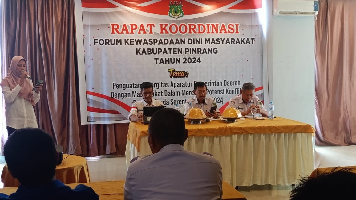 ANGINDAI.COM – Badan Kesatuan Bangsa dan Politik (Kesbangpol) Kabupaten Pinrang menggelar rapat koordinasi Forum Kewaspadaan Dini Masyarakat (FKDM) pasca Pilkada 2024.