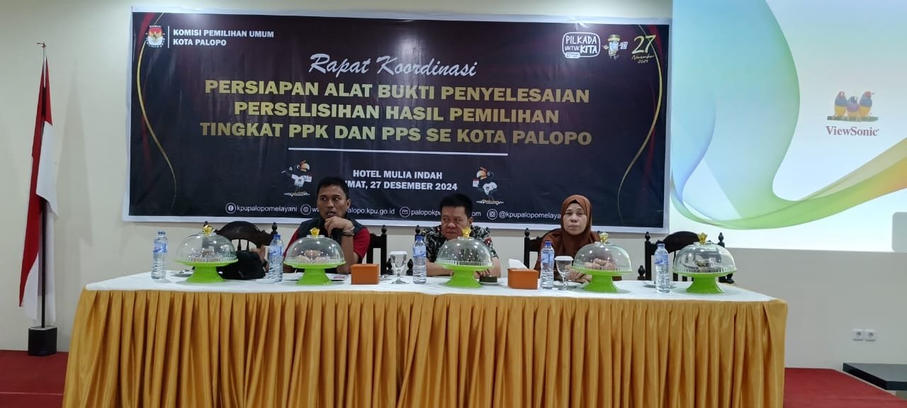 Rakor ini difokuskan pada pembahasan persiapan alat bukti penyelesaian perselisihan hasil pemilihan tingkat Panitia Pemilihan Kecamatan (PPK) dan Panitia Pemungutan Suara (PPS) se-Kota Palopo.