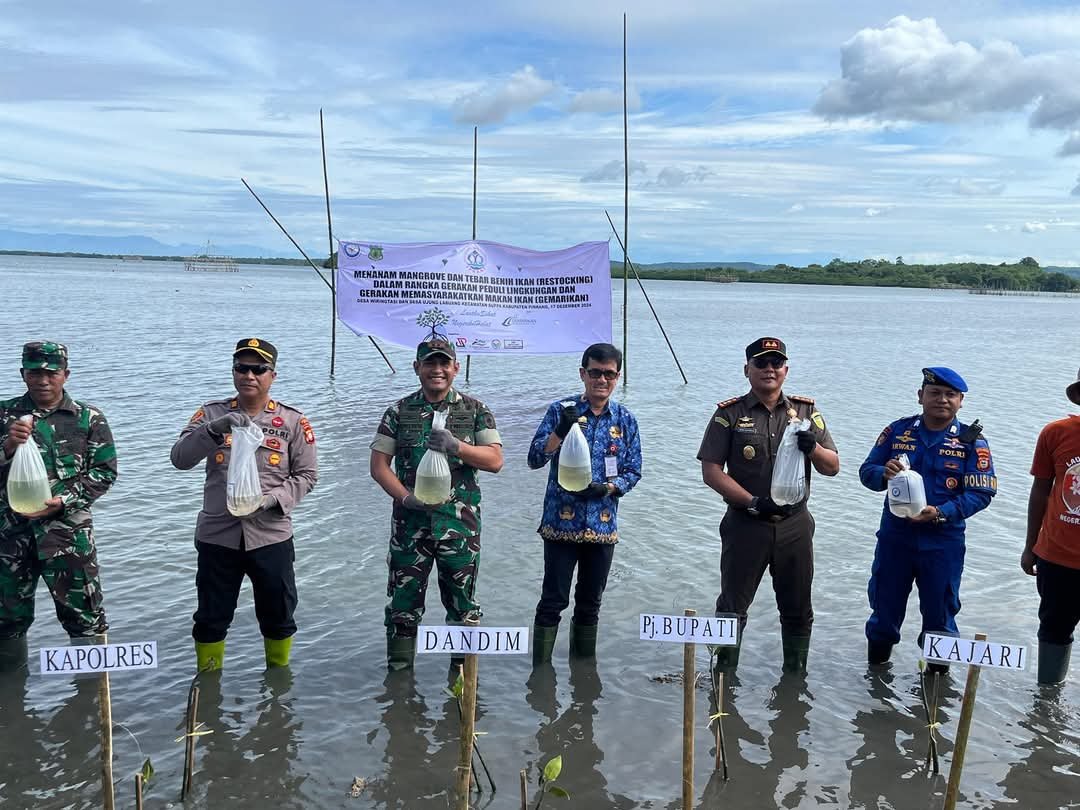Andi Tjalo Kerrang bersama unsur Forkopimda Pinrang melakukan penanaman mangrove dan penebaran benih ikan pada kegiatan Gerakan Peduli Lingkungan dan Gerakan Memasyarakatkan Makan Ikan yang dilaksanakan oleh Ikatan Penyuluh Perikanan Indonesia (IPKANI) DPD Sulsel.