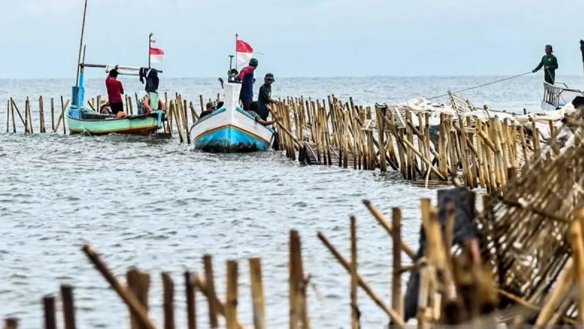 ANGINDAI.COM – Sejumlah nelayan bersama personel TNI AL membongkar pagar laut yang terpasang di kawasan pesisir Tanjung Pasir, Kabupaten Tangerang, Banten sejak Sabtu (18/1/2025).