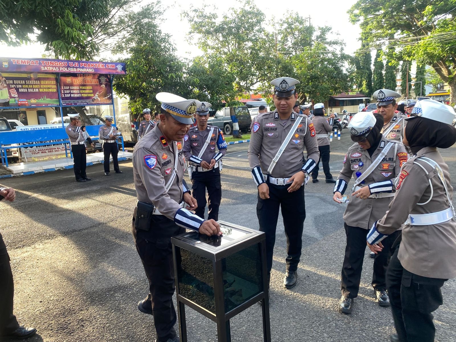 Kegiatan ini dilakukan setelah apel pagi, di mana seluruh personel Satlantas Polres Pinrang secara serentak mendekati kotak amal untuk memberikan sumbangan seadanya.