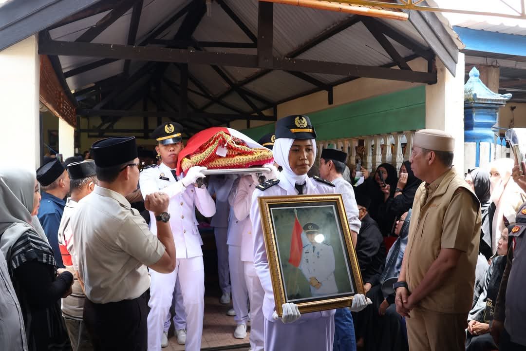 Prosesi berlangsung penuh haru, dihadiri oleh keluarga, kolega, serta jajaran pemerintah daerah yang turut memberikan penghormatan terakhir kepada almarhum.