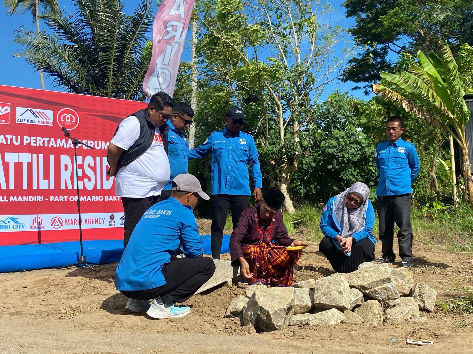 Peletakan batu pertama dihadiri Asisten III Setda Pinrang, Syamsumarlin mewakili Bupati Pinrang juga hadir sejumlah tokoh masyarakat Pinrang. Peletakan batu pertama itu juga dihadiri pimpinan Bank BNI dan BSI. Hadir pula notaris mitra Mario Group.