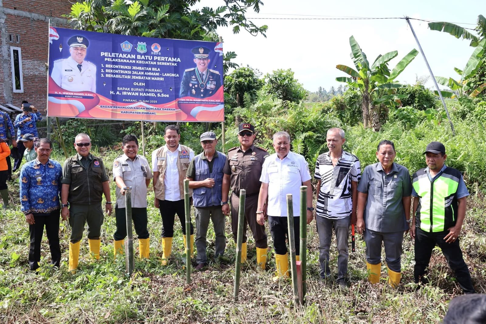 ANGINDAI.COM – Bupati Pinrang, Andi Irwan Hamid, menghadiri ground launching tiga proyek pemulihan pasca bencana tahun anggaran 2024 secara serentak di Jembatan Bila di Desa Tapporang, Kecamatan Batulappa, Kabupaten Pinrang Selasa (17/6/2025).